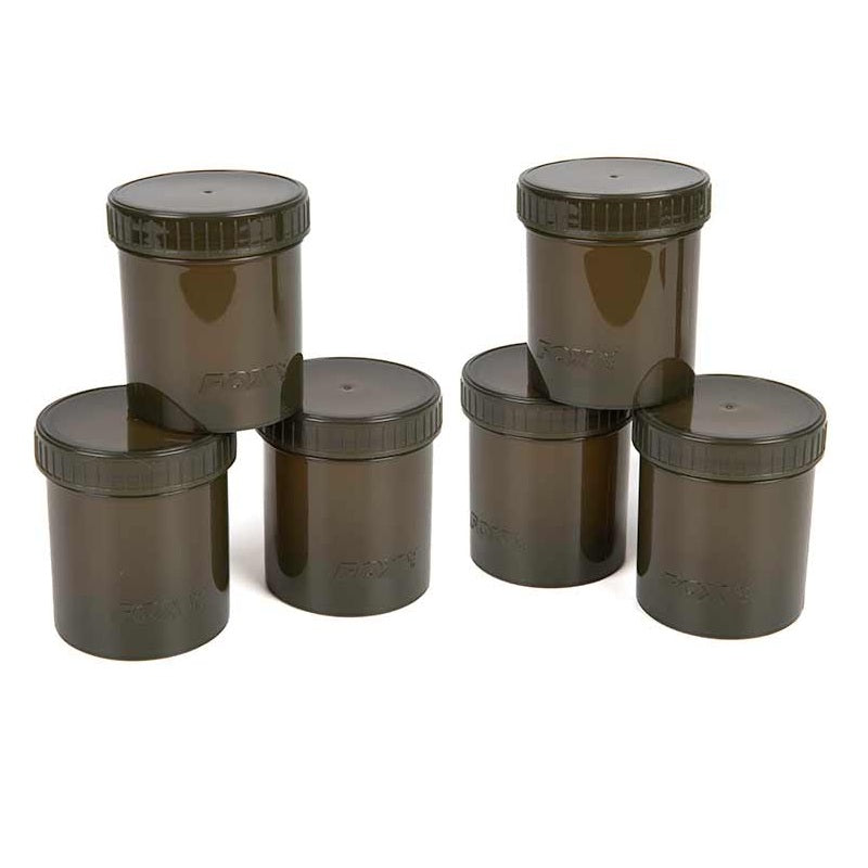 Pack of 6 jars for baits of the brand Fox ,model Edges, designed for the safe storage of all hook baits, especially for carpfishing.
