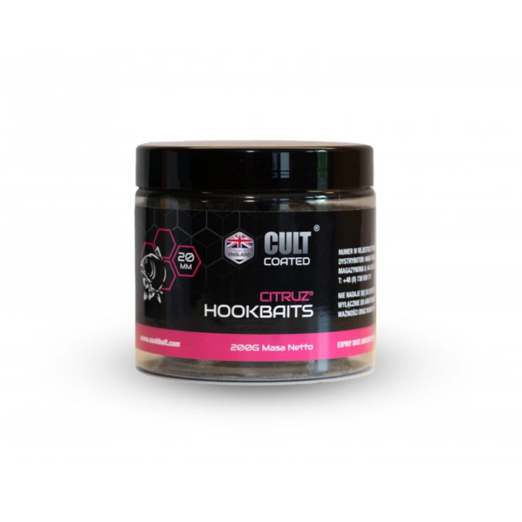 - The coating of a Cult Coated Hookbait releases a nature-identical feeding signal, rich in aminoacids, vitamins, nucleotides and minerals, with a track record of catching the largest carp.