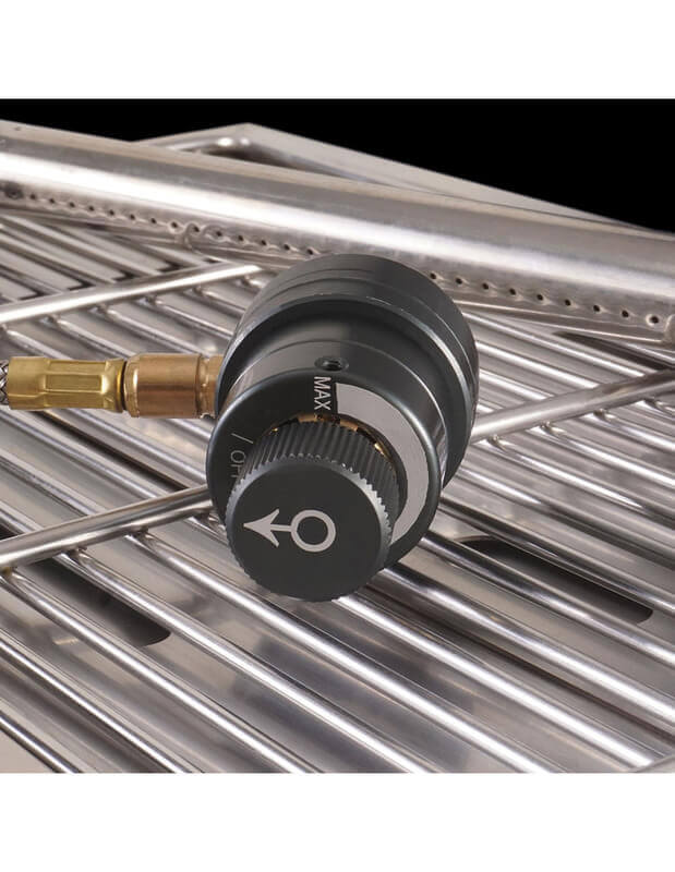 Portable gas barbecue of the brand Ridge Monkey model Grilla, special for carpfishing. It has a long igniter with adjustable heat and piezoelectric ignition together with a removable stainless steel auxiliary table.