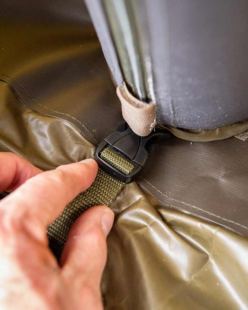 - Lightweight, clip-on removable ground sheet with steel frame brackets included.