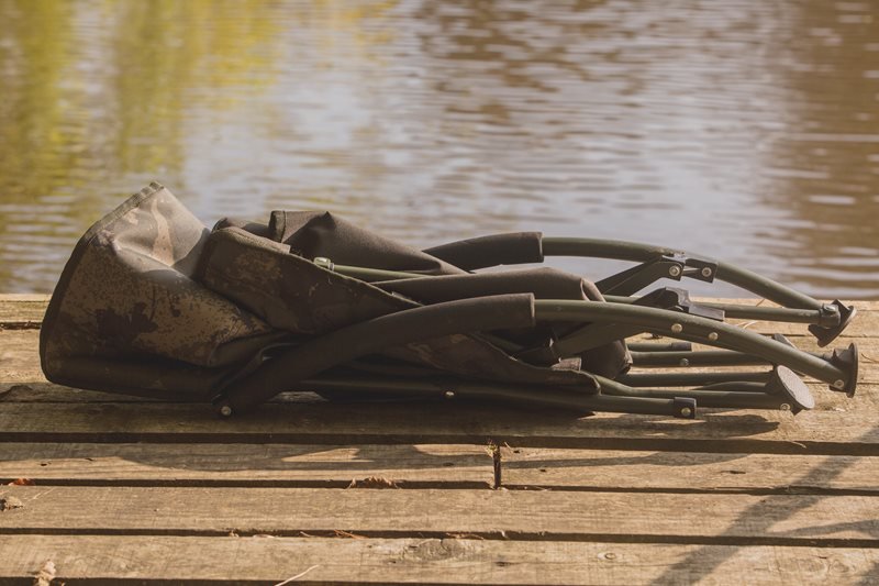 Brand chair Solar, model Undercover, in color camo, perfect for carpfishing.