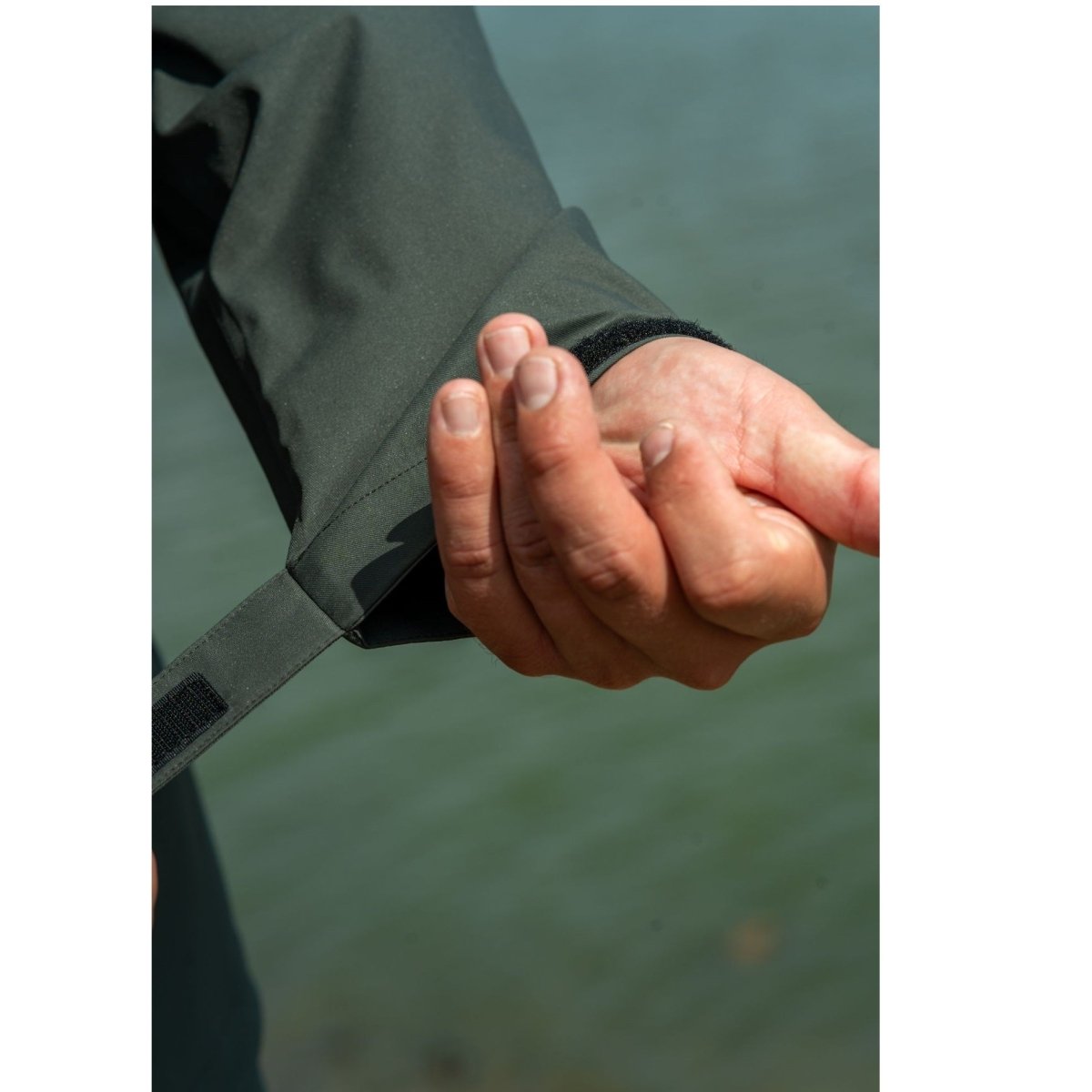 - Sleeves have angled hook-and-loop cuffs to wick away water and keep us dry