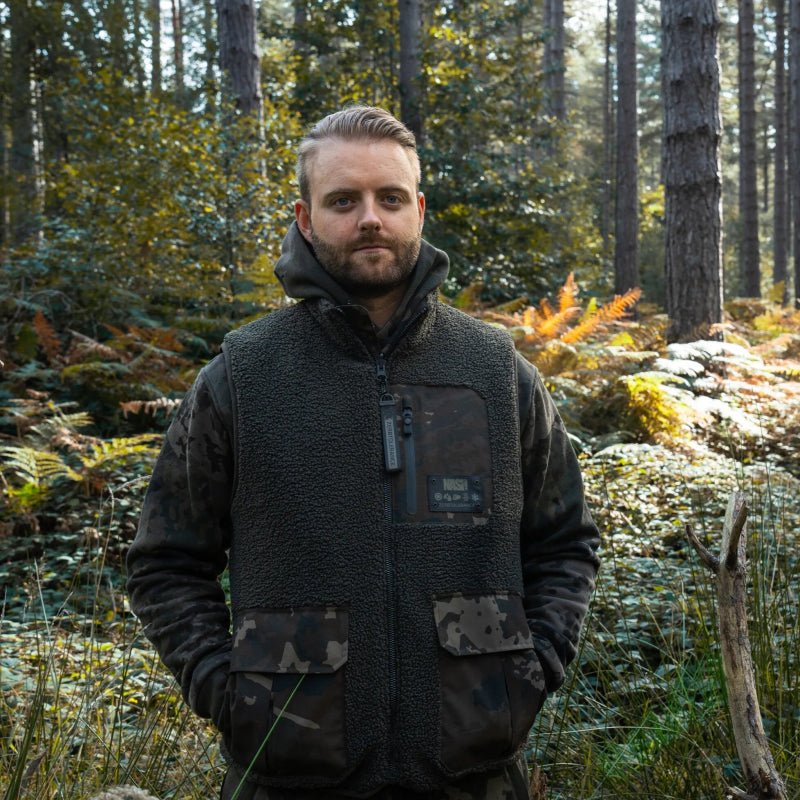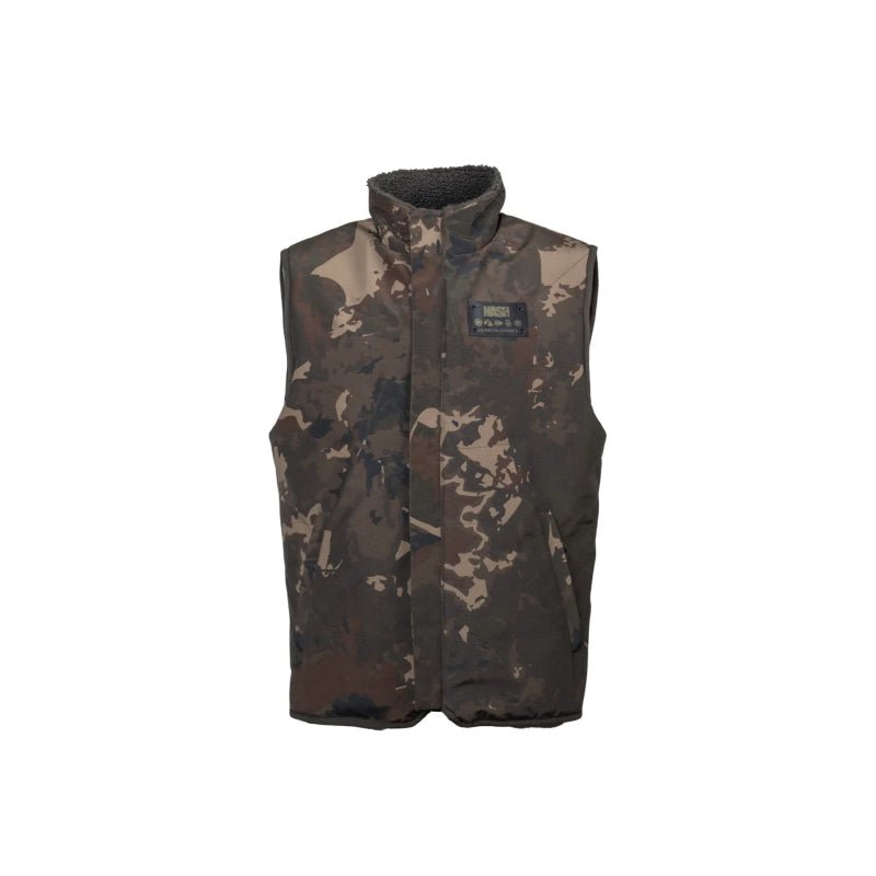 Sleeveless waterproof vest of the brand Nash model ZT Sherpa with color design camospecial for carpfishing.