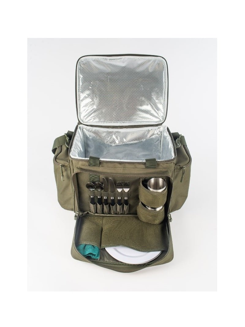 - Front pockets to neatly store 2 plates, 2 spoons, 2 forks, 2 cups and 1 napkin (included)