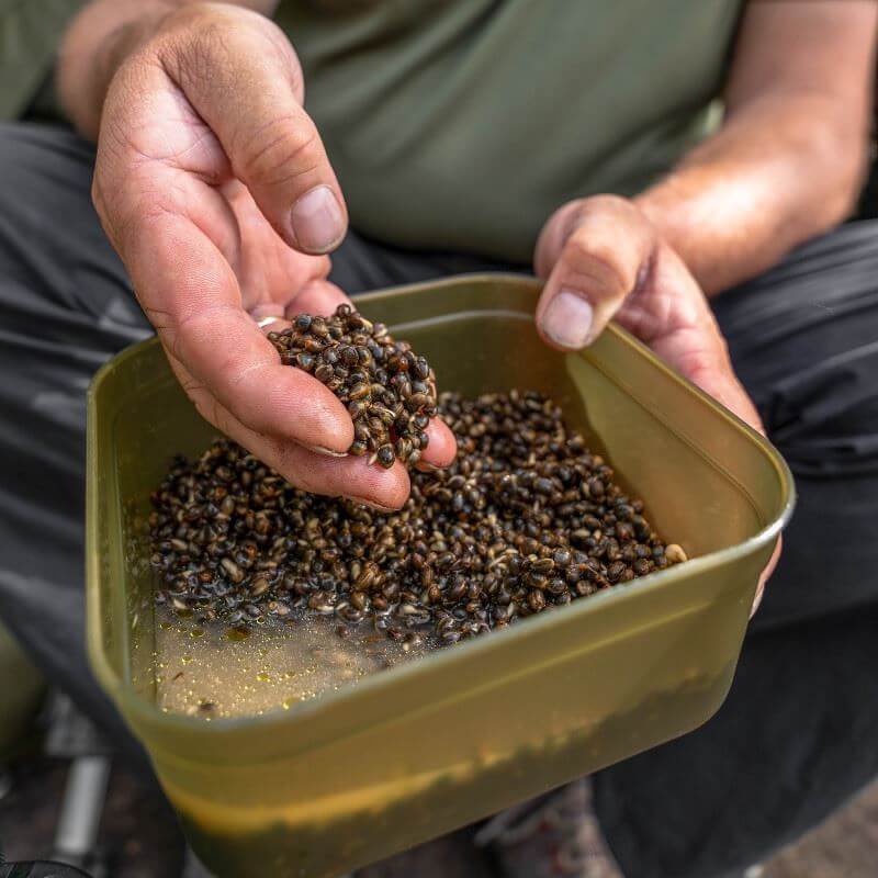 Brand bucket Korum in color green with capacity of 1.8 liters, special for carpfishing. Strong and compact bait container with sealing lids.