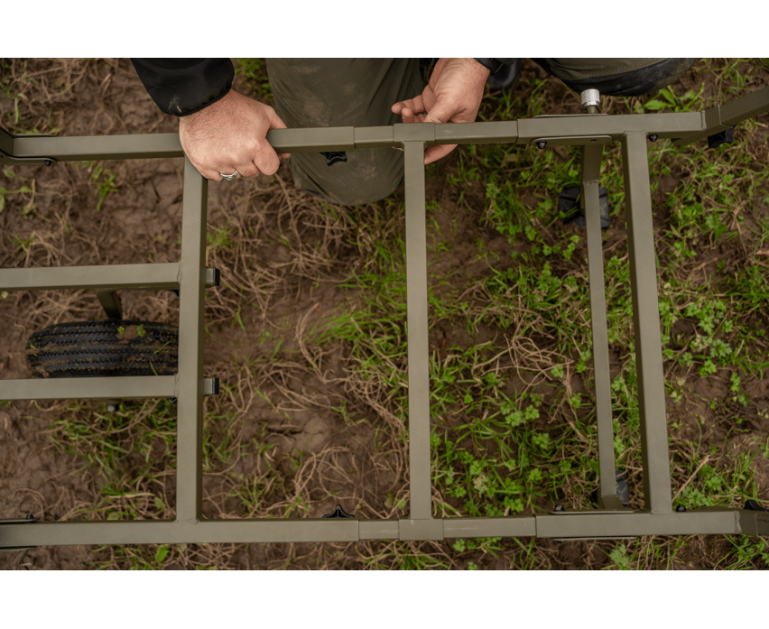 - Equipped with sturdy tires and large mud feet type Korum for stability on uneven terrain