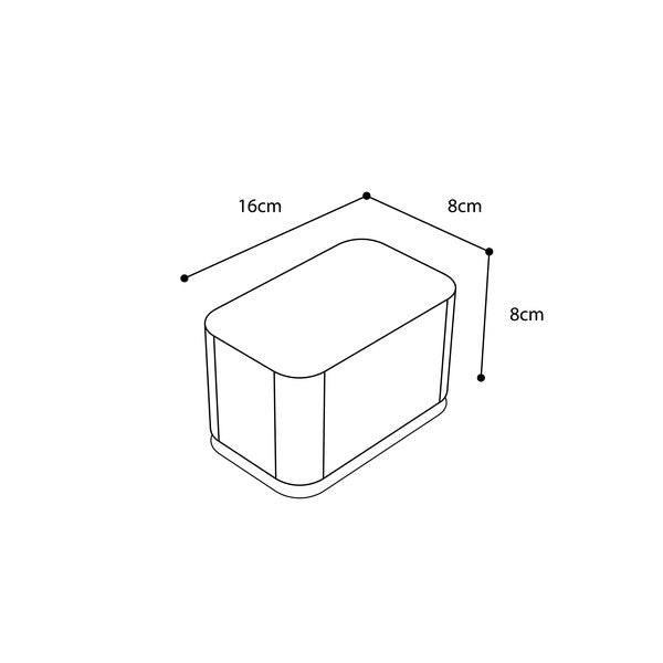 - 8 (height) x 16 (width) x 8 cm (depth)