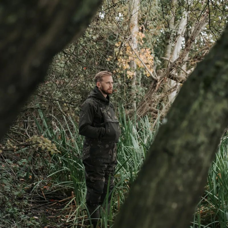 Waterproof bib and brace Nash model ZT Helluva design camouflage in color camospecial for carpfishing. Design with fabric very resistant to water to be able to enter the shore to retrieve fish, set tackle, bait, take pictures and return the fish safely.