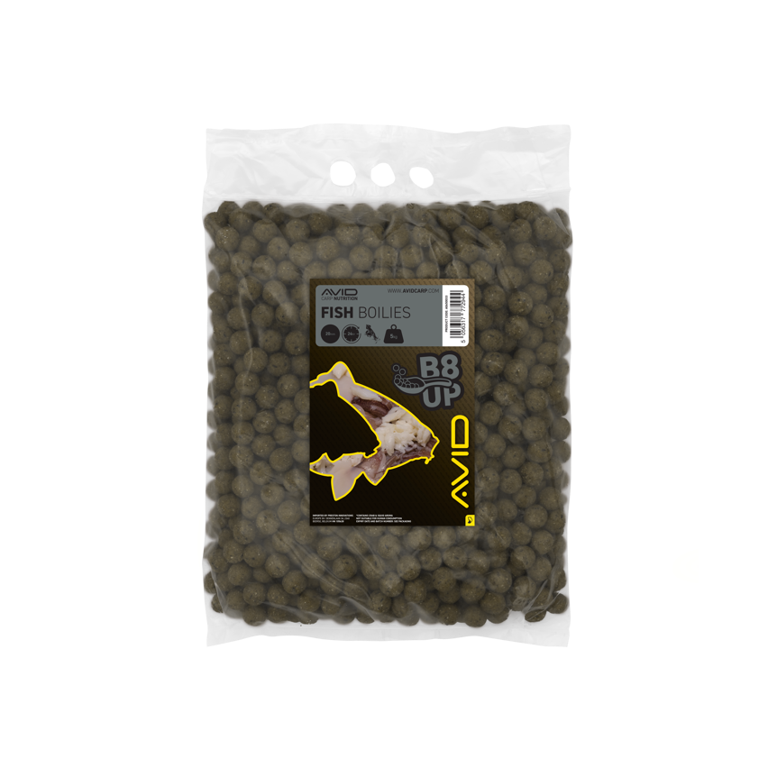 Boilies of the brand Avid Carp, range B8-Up, flavor Fish, special for carpfishing.