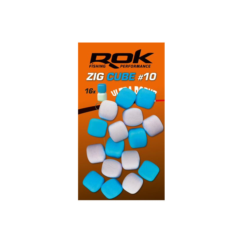 Pop ups artificial brand Rok Fishing model Zig Cube from size 10 in color blue and whitespecial for carpfishing.