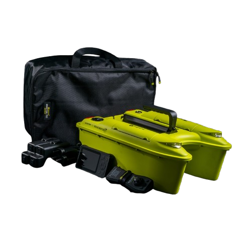Bait boat of the brand Ridge Monkey, model Hunter 750, version Hi-Viz version, in color yellow, special for carpfishing.