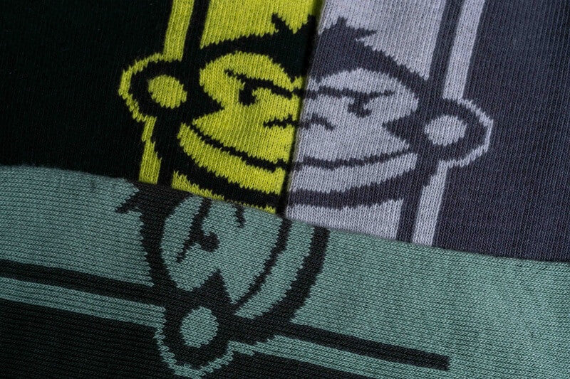 Pack of three socks of the brand Ridge Monkey model Apearel Crew model of the size 39-43 in color green, yellow and greyspecial for carpfishing.