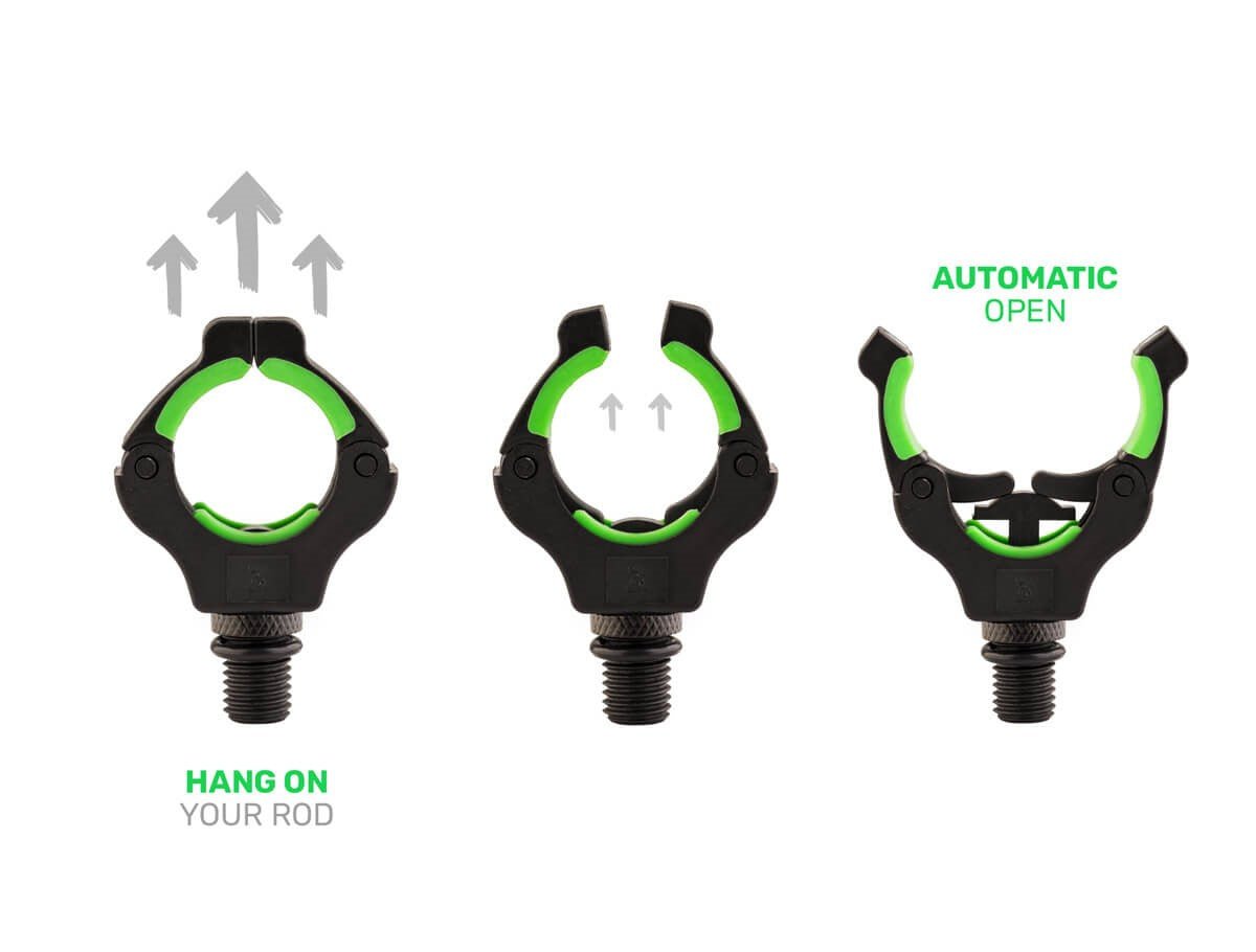Support to hold the rod of the Zfish model Magsafe in color black and greenspecial for carpfishing.