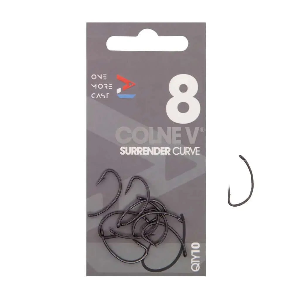 Hooks of the brand OMC model Colne V Surrender Curvespecial for carpfishing. Available in sizes 2. 4, 6 and 8.