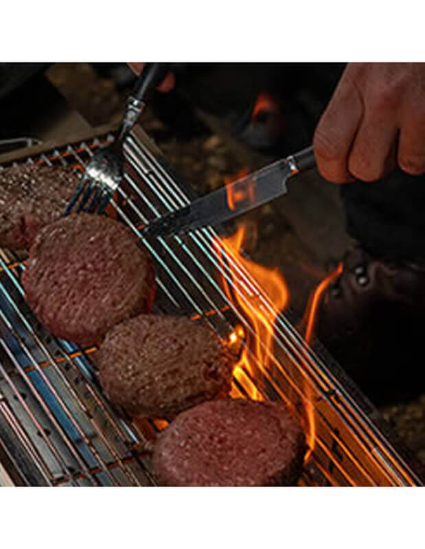Portable gas barbecue of the brand Ridge Monkey model Grilla, special for carpfishing. It has a long igniter with adjustable heat and piezoelectric ignition together with a removable stainless steel auxiliary table.