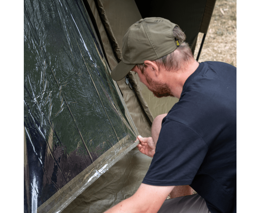 - The front can be rolled up completely for an open bivvy, while the two-way letterbox door includes integrated mesh and PVC window