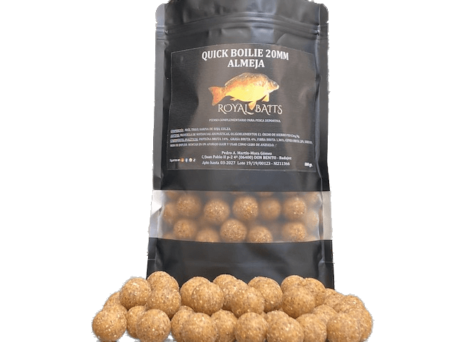 Bag of boilies of the brand Royal Baits flavor Clam in color brown, special for carpfishing.