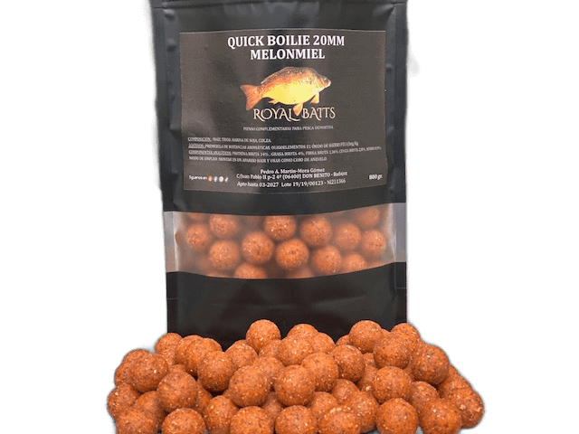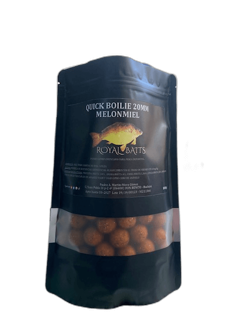 Bag of boilies of the brand Royal Baits flavor Melon Honey in color brown, special for carpfishing.