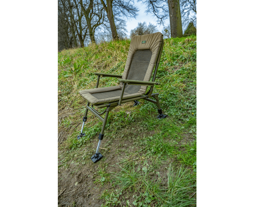 - Includes padded armrests and adjusted front legs for maximum extension, ideal for sloping terrain