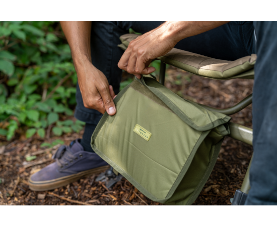 Organizer for chair of the brand Korum, model Progress, perfect for your carpfishing sessions.