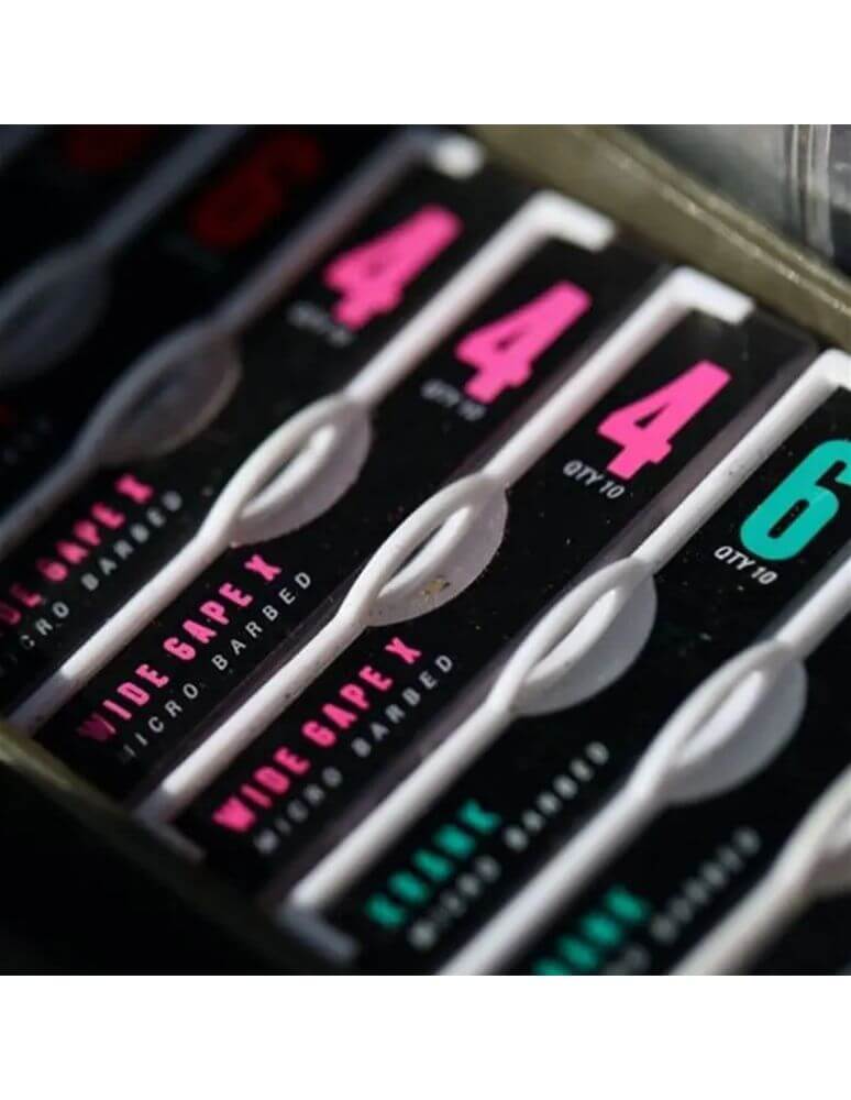 Hooks of the brand Korda of the range Kamakura Wide Gape X, special for carpfishing. This type of hook is characterized by its heavier gauge wire with a very sharp point and wax protection. Available in numbers 4, 6 and 8.
