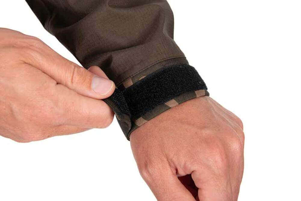 Waterproof jacket with hood from the brand Fox model RS 10 K with design camouflage in color khakispecial for carpfishing.