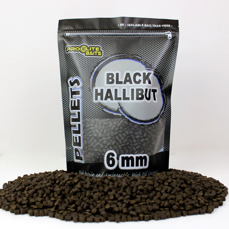 Micropellets Black from 6 millimeters of the brand Pro Elite Baits flavor Halibut in color black, special for carpfishing baiting.