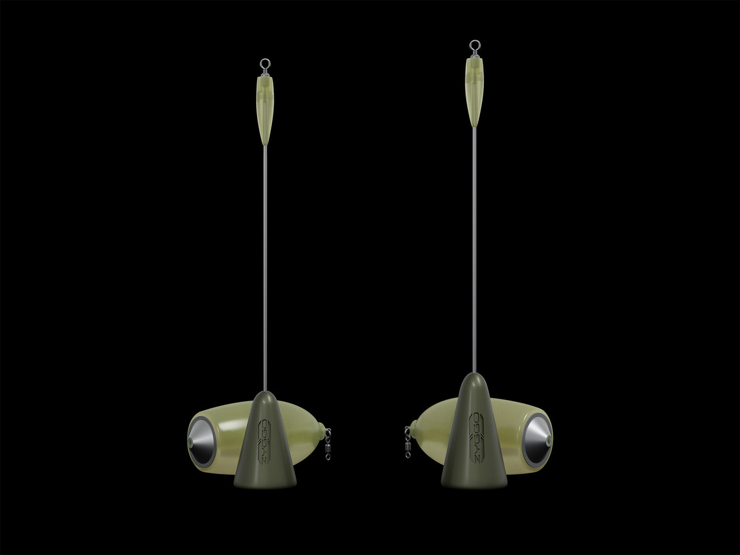 Adjustable floating kit Zig brand Ridge Monkey model Zyggo for special carpfishing assemblies in the new Zig style in size medium (0,5kg) and large (0,65kg). The float used in the Zig kit has been carefully chosen to ensure that it is buoyant enough to float easily to the surface, but small enough not to adversely affect the range at which it can be used.